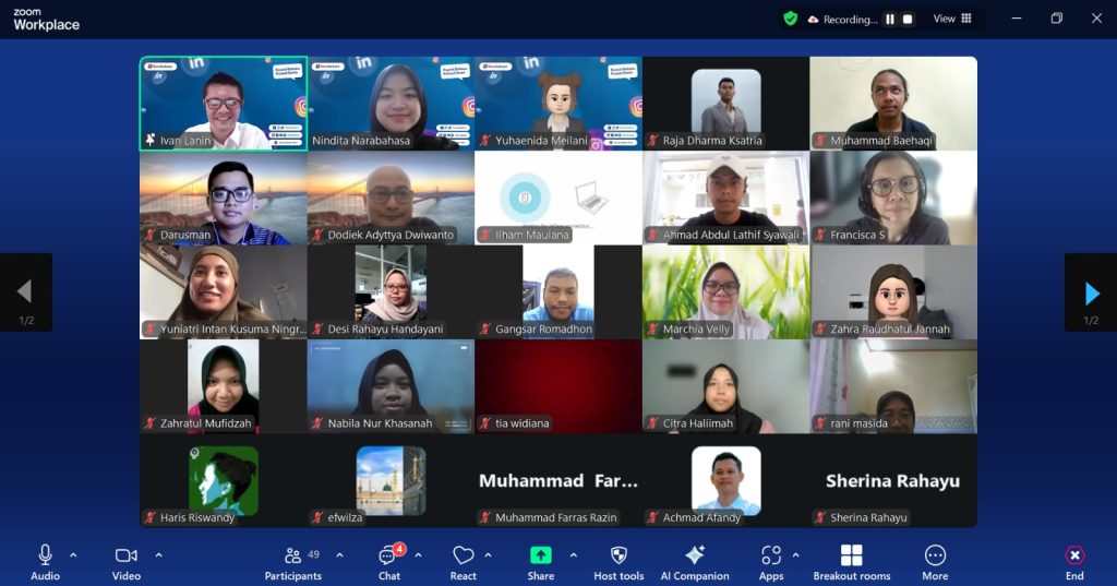 Ivan menguraikan lima aspek pembeda antara Instagram dan LinkedIn, yaitu gaya, nada, fokus, tujuan, dan visual. Menurutnya, konten di Instagram cenderung menyentuh hati, sedangkan konten di LinkedIn lebih menyentuh pikiran. Ia juga mendorong peserta untuk membiasakan diri mencatat ide, menceritakan momen yang memunculkan reaksi, lalu membuat makna dari pengalaman tersebut.