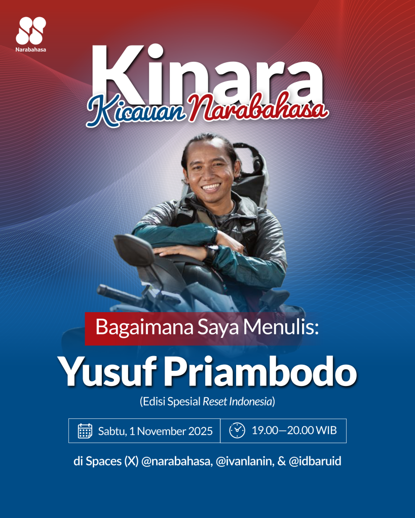 Program Kinara (Kicauan Narabahasa) kembali hadir pada Sabtu, 1 November 2025, melalui platform Spaces X. Episode ke-58 ini menghadirkan Yusuf Priambodo, salah satu penulis buku Reset Indonesia, dengan Nida sebagai moderator.