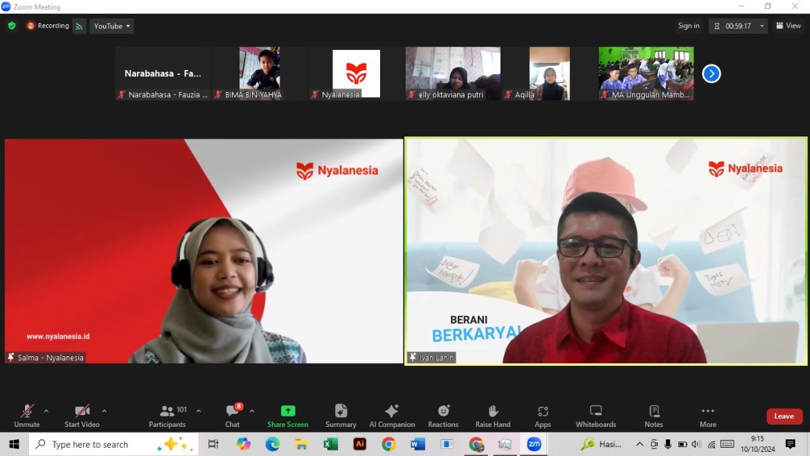 Pada Kamis, 10 Oktober 2024, Nyalanesia bekerja sama dengan Narabahasa dalam menggelar webinar bertajuk “Menyiapkan Karya Terbaik bagi Sekolah: Teknik Penceritaan Objek dengan Menarik”. Acara yang berlangsung pukul 09.00 s.d. 11.00 WIB ini merupakan bagian dari program Gerakan Sekolah Menulis Buku Nasional (GSMB Nasional). Peserta yang hadir berasal dari berbagai jenjang pendidikan, mulai dari SD hingga SMA. Mereka membawa beragam karya, seperti artikel, esai, puisi, hingga cerita fiksi maupun nyata.
