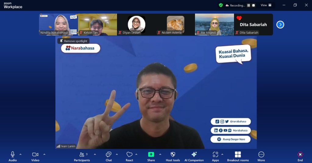 Narabahasa kembali menggelar Kelas Daring Publik (KDP) dengan topik “Trik Mengubah Tulisan Jadi Cuan” bersama Ivan lanin sebagai narasumber pada Sabtu, 4 Oktober 2025, pukul 09.00–11.00 WIB.